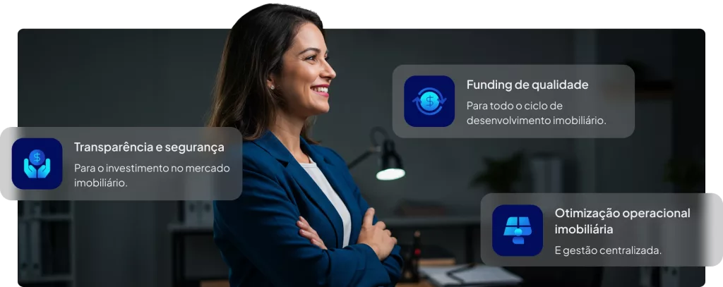 Nosso diferencial está na amplitude e na integração das soluções que entregamos. Somos a ponte entre quem desenvolve e quem investe no mercado habitacional, com uma proposta de valor baseada em: